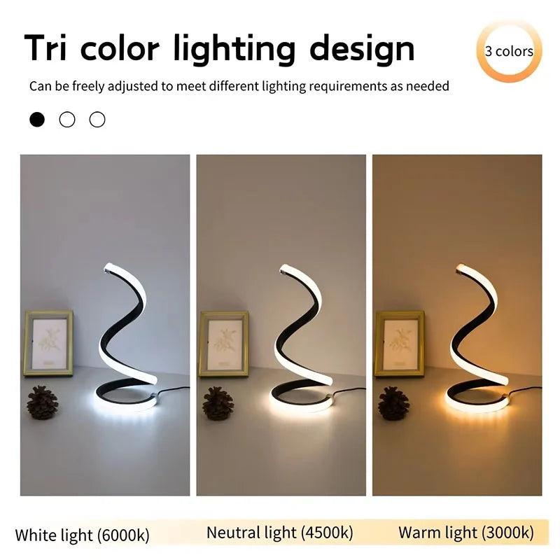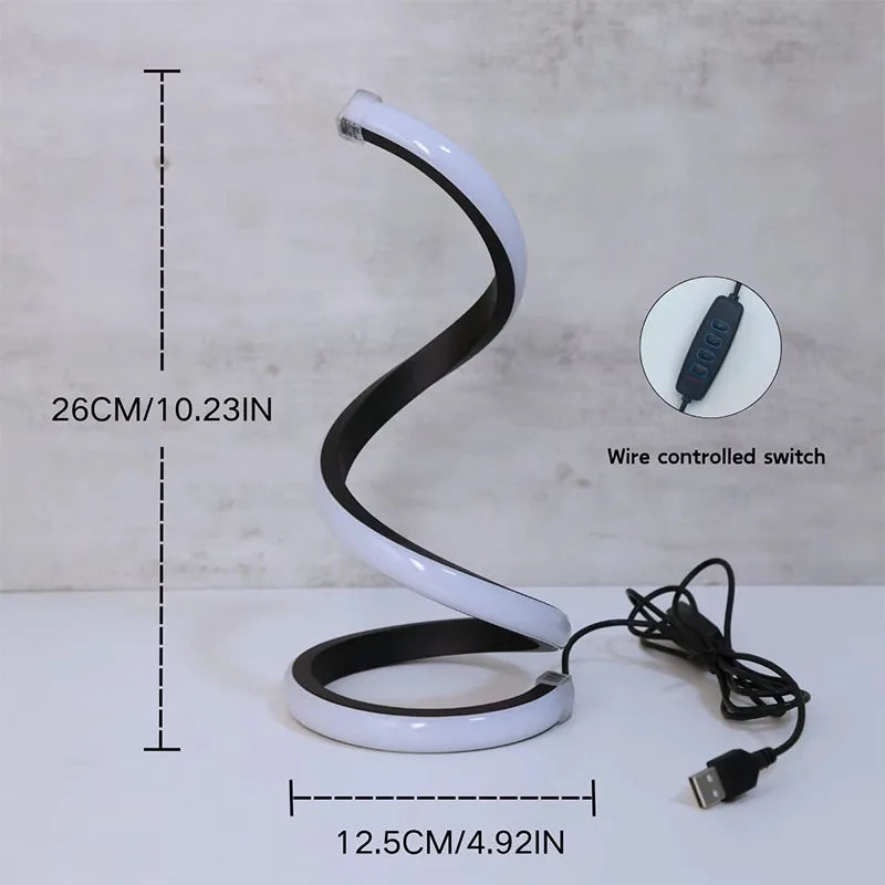 2025 New Modern spiral serpentine desktop LED desk lamp three-speed dimming USB button switch bedroom decorative desk lamp