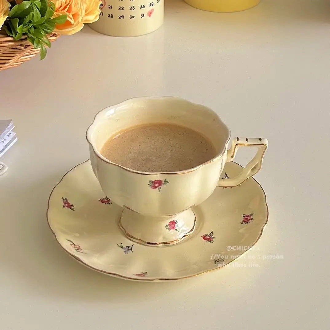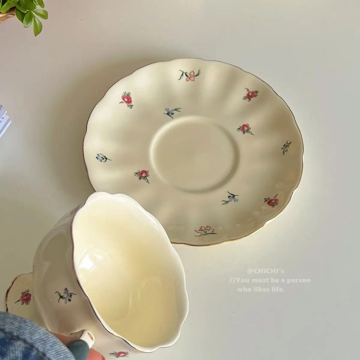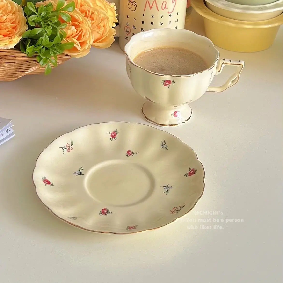 Ceramic Tea Cups Plate Set Exquisite Afternoon Tea Coffee Cup Cream Color High Beauty Household Mug Birthday Gift 250ml