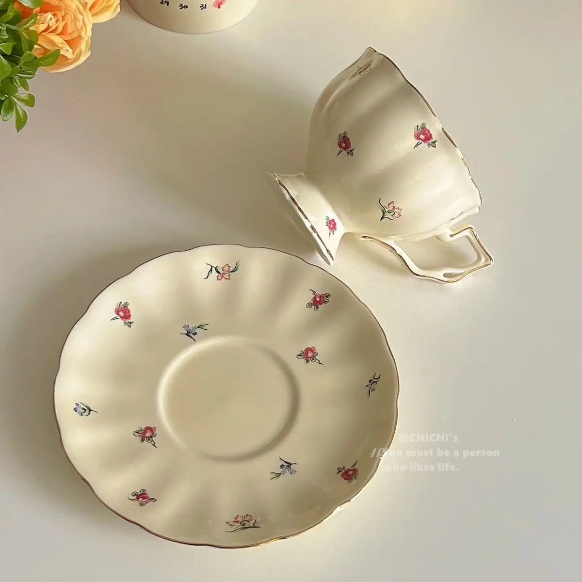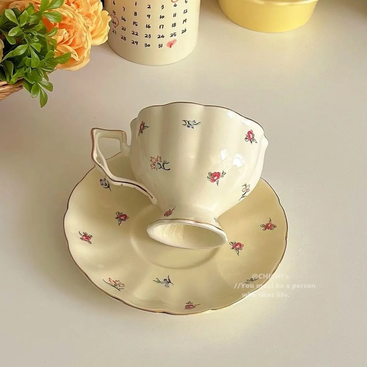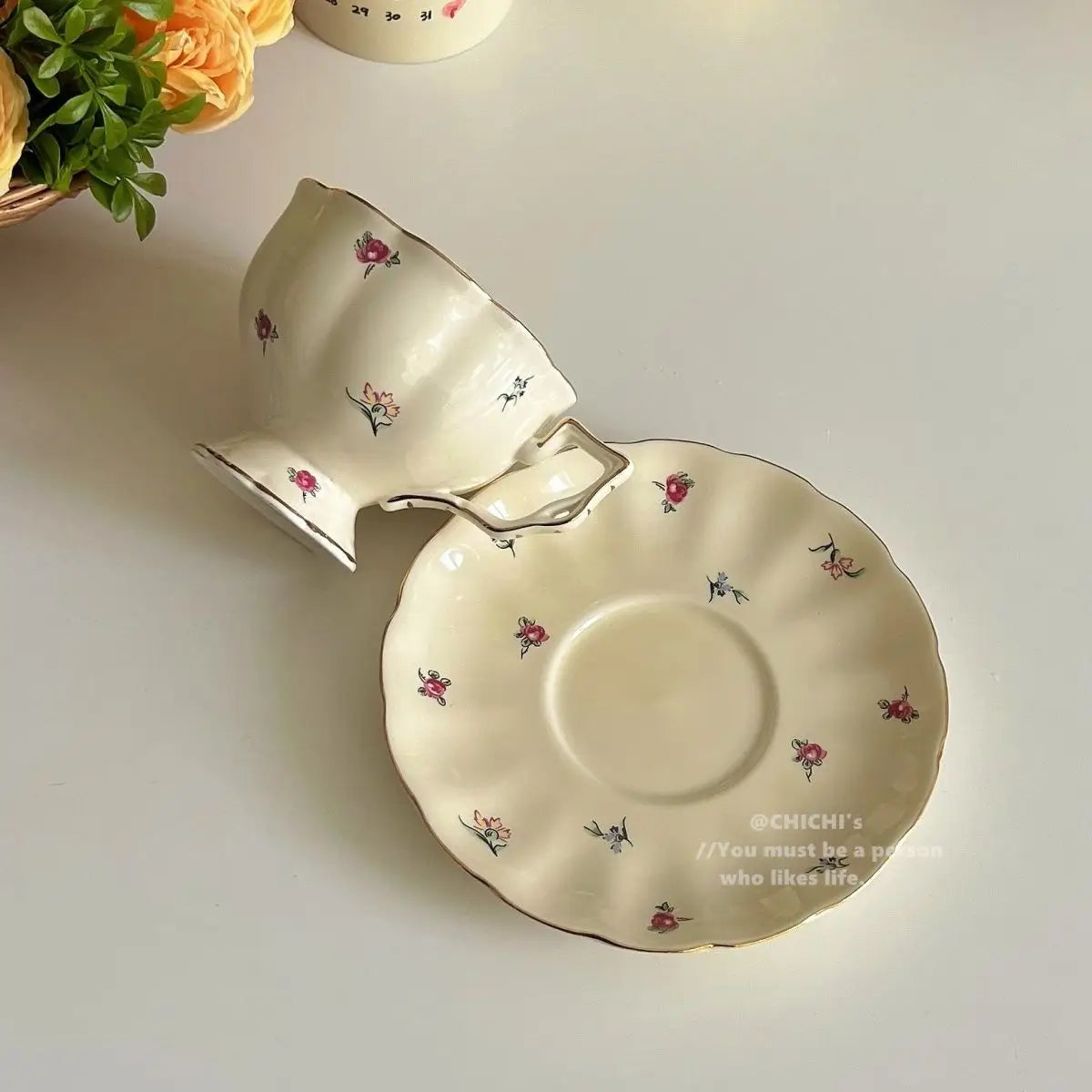 Ceramic Tea Cups Plate Set Exquisite Afternoon Tea Coffee Cup Cream Color High Beauty Household Mug Birthday Gift 250ml